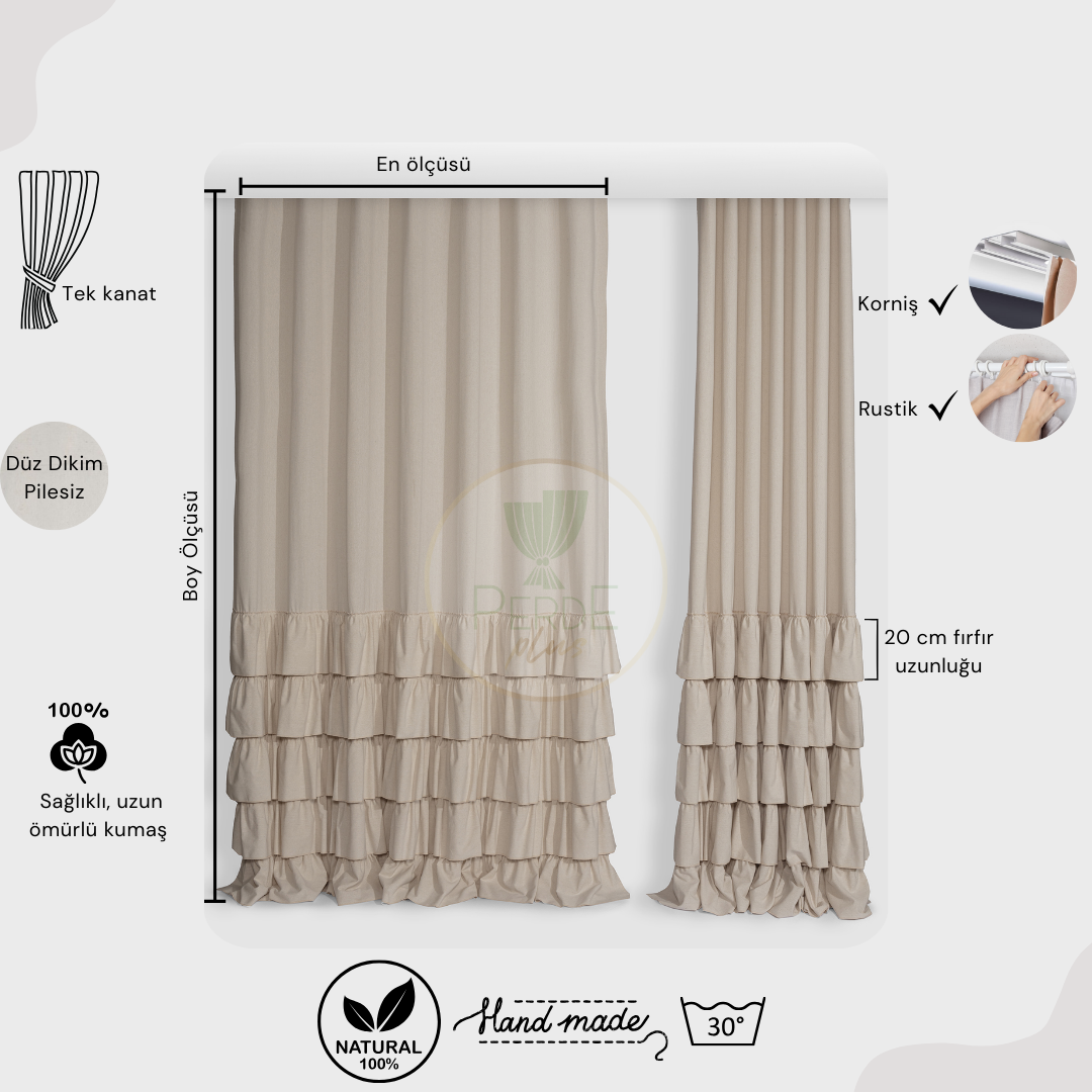 5 Fırfırlı Tasarım Pamuklu Fon Perde