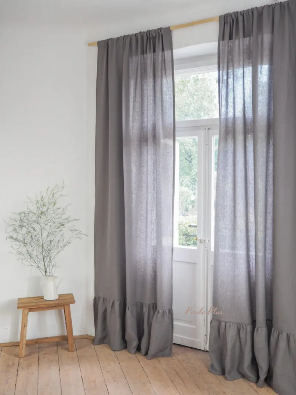 Doğal renkteki keten perdeler, keten tül kumaşından dikilmiştir. Keten kumaşın benzersiz dokusu, serbest hava sirkülasyonu sağlar. Perdelerin eteği dekoratif bir fırfır ile tamamlanmıştır, üst kısmı düz dikimdir. İster fon ister tül olarak kullanıma uygundur. Etek kısmı fırfır boyu 50 cm olup toplam boya dahildir.