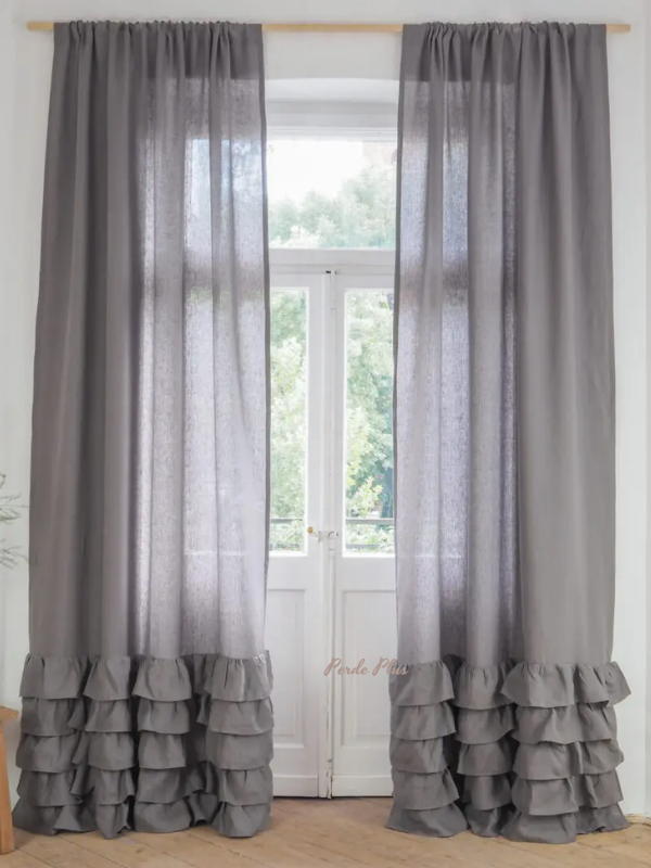 Keten Tül Perde Tasarım Eteği Fırfırlı Antrasit