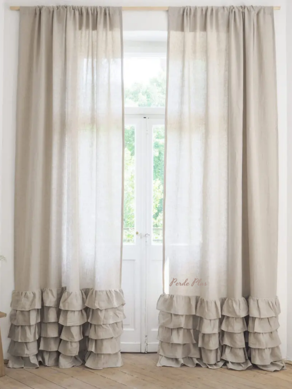 Keten Tül Perde Tasarım Eteği Fırfırlı Krem